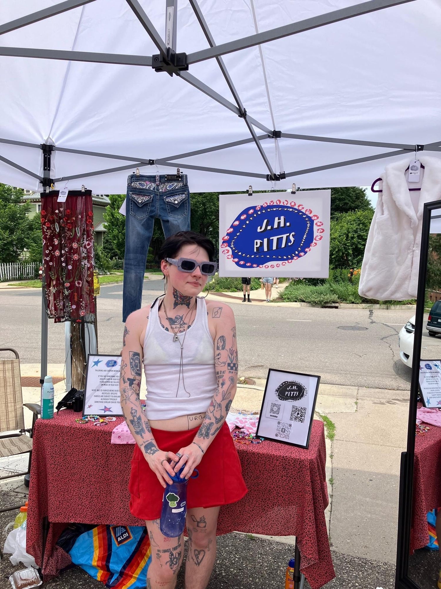 Founded in 2024 by LB Walstrom, J.H. Pitts is a one-person clothing brand. From sourcing materials, from pattern making, to sewing and marketing, it is all done in the Minneapolis, MN apartment of LB (with some help from their cat, Sherbie). In an effort to focus on sustainability, JHP uses mostly recycled materials, mainly thrifted and dead stock fabrics.