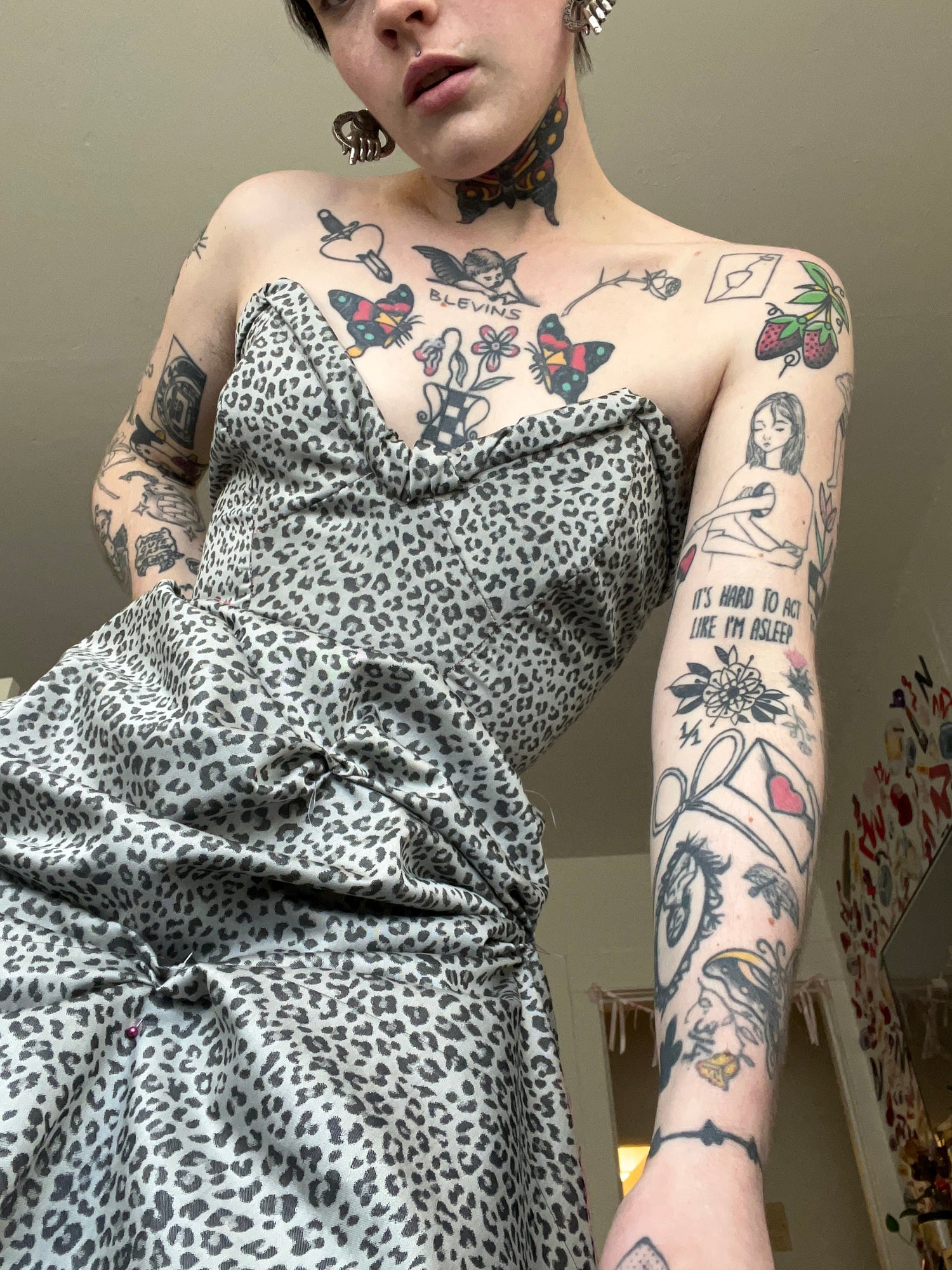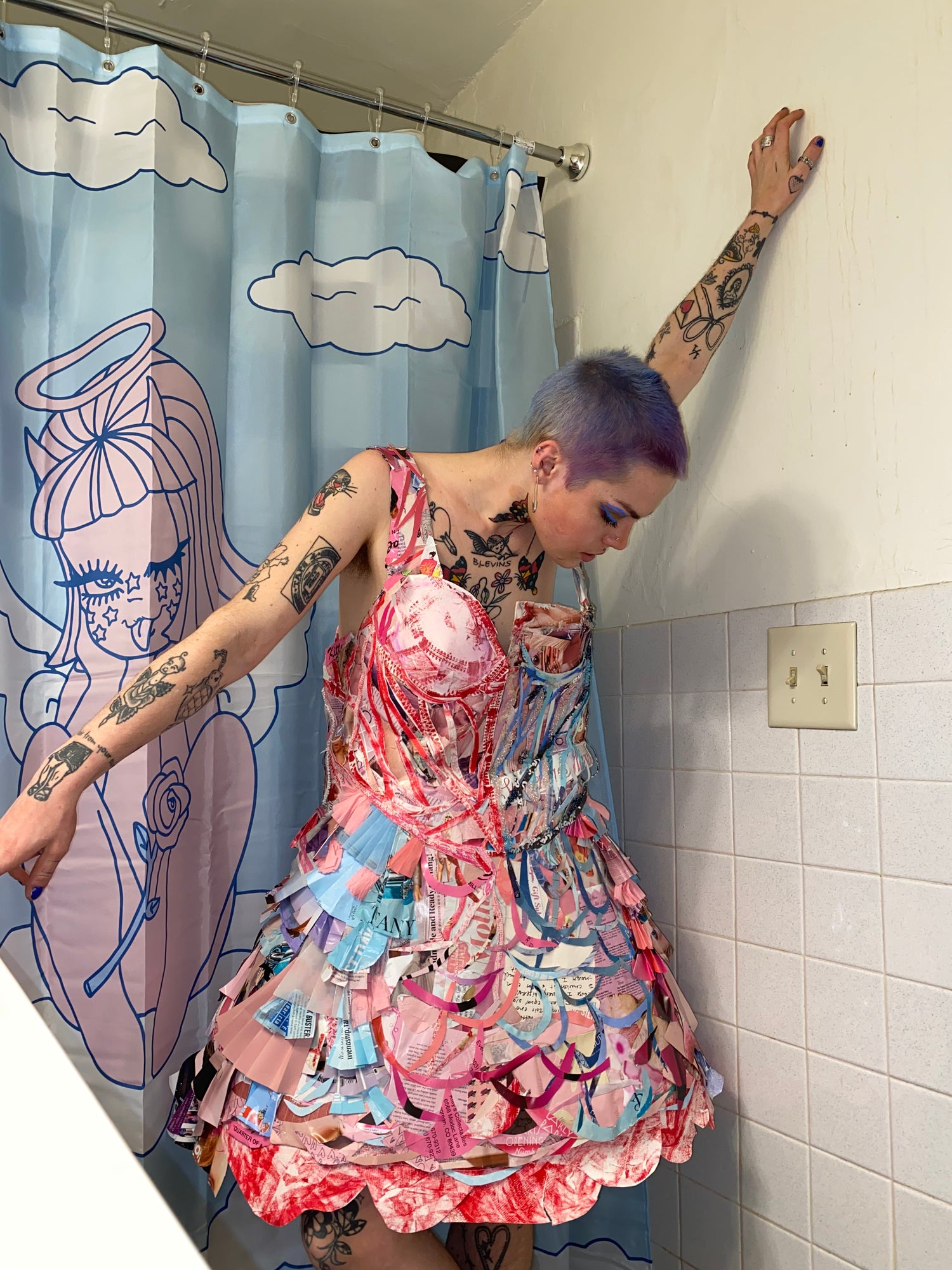 2 week project, making a dress out of magazines for a musician to wear on stage. rip to this dress, it had to be tossed when my old apartment became roach infested :(