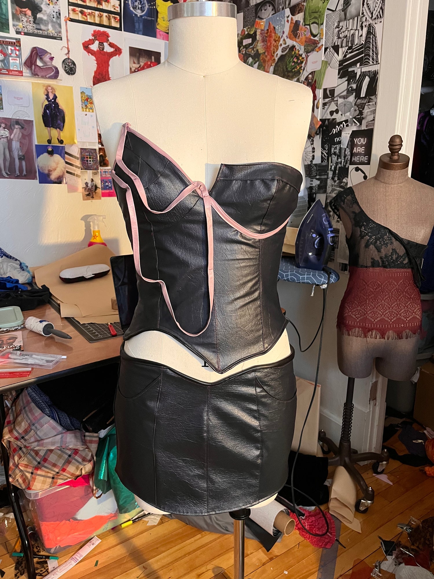faux leather set that I made in response to a set that was vaguely bridal. It feels weird to say "this set is about relationships ending" with clothing, but that's the truth. My long term relationship ended, and I made this set in part to process that ending.