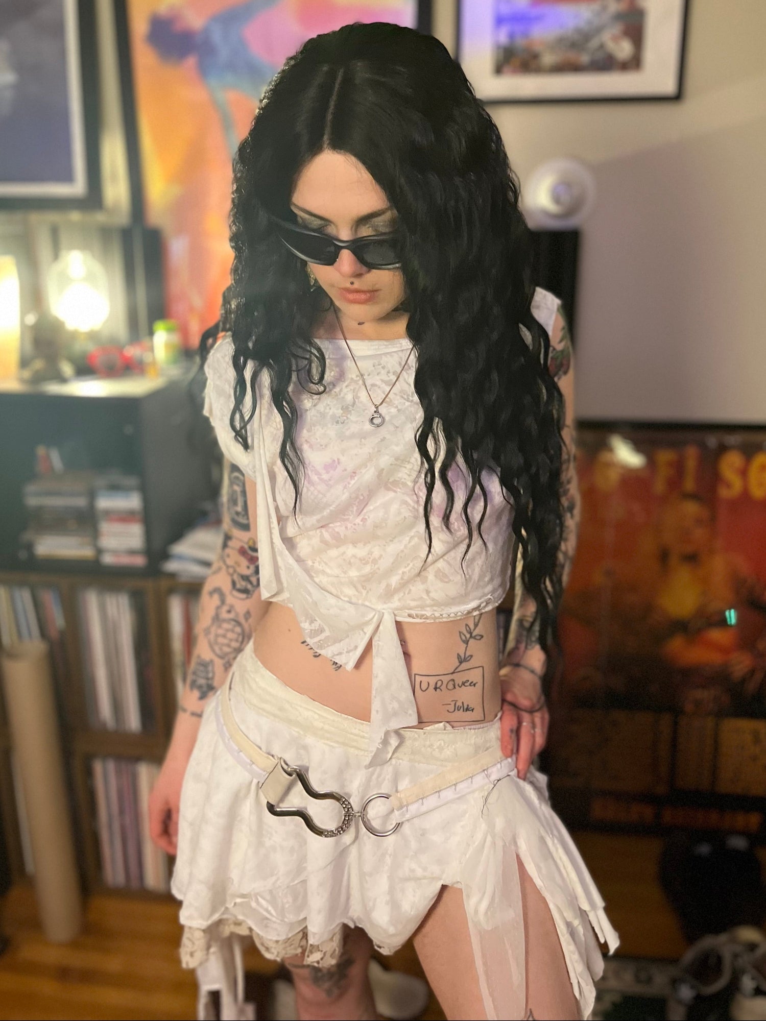 3 piece set including a top, skirt and belt. inspired by the costumes from the 2024 sweat tour.