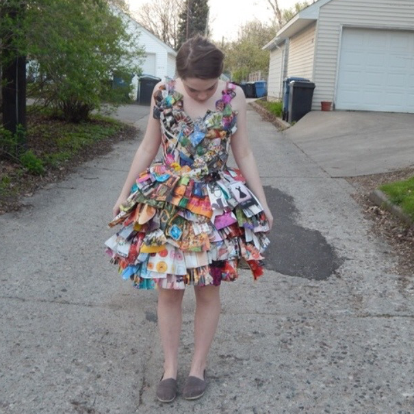 so 2014, do you see the toms?? anyway, I made this dress out of magazines, and it won the grand prize for the childrens art section at the MN state fair in 2014. I think I won $21. pretty cool.