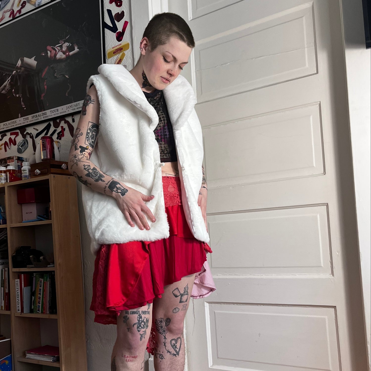 I love the idea of a big faux fur vest, and this is just that. skirt and top also by me, but clearly the vest is the star.