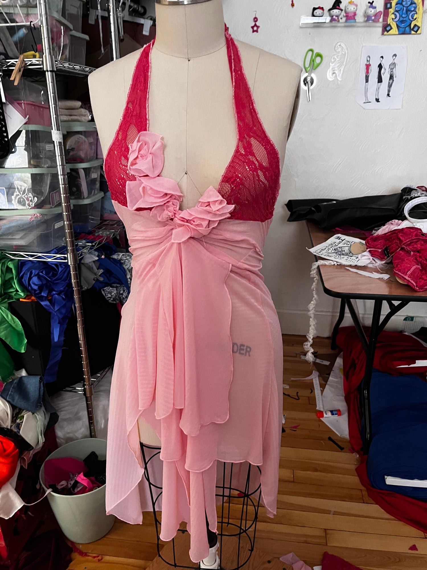 scrap dress with flowers. would be good for like, frolicking in a field, or whatever.